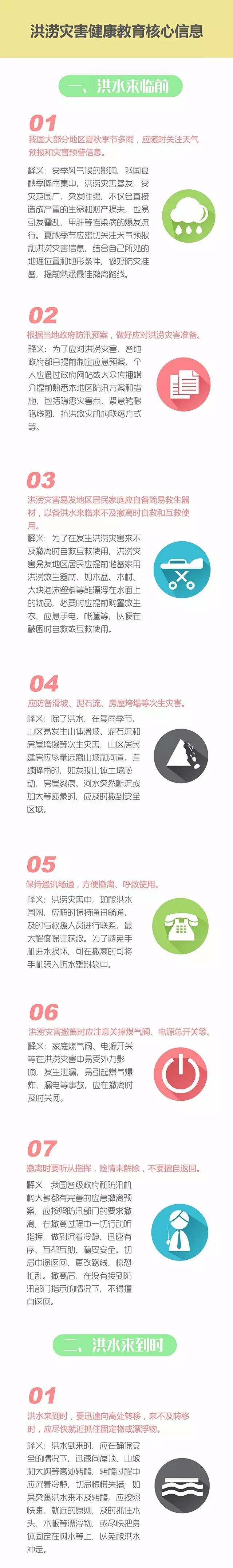 核心信息分別從洪水來臨前的應對準備、洪水來臨時如何呼救與安全轉移、災后如何預防疾病,以及中暑癥狀、救治方法、高溫作業防護等方面,向公眾提供科學權威的健康知識,對于提高公眾應對洪澇災害、中暑和災后防病的能力具有重要意義。